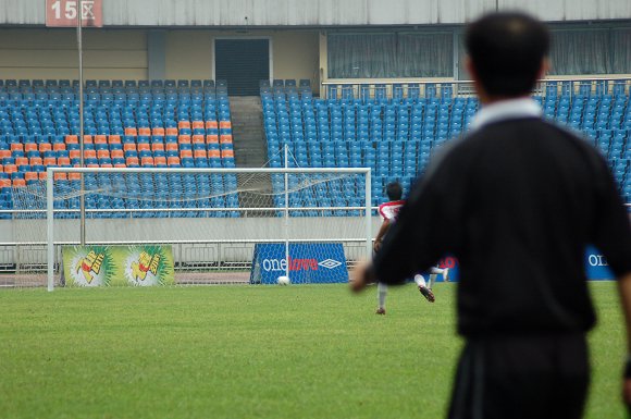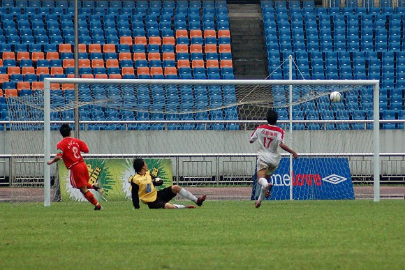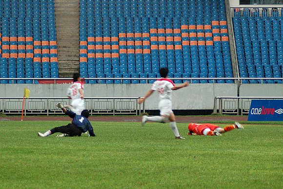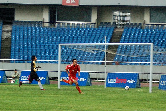随着6号“点球专家”于飞的一脚巧射,场上的比分变为1:0。