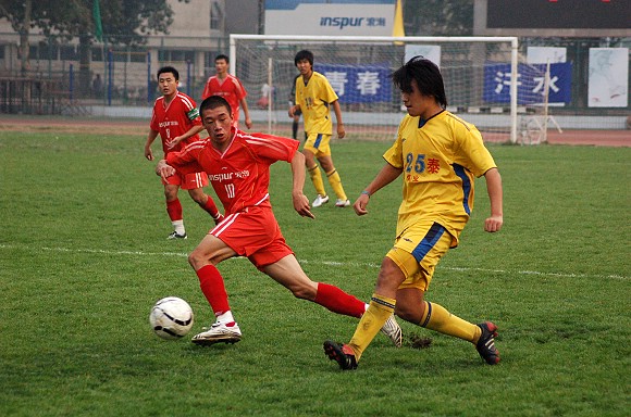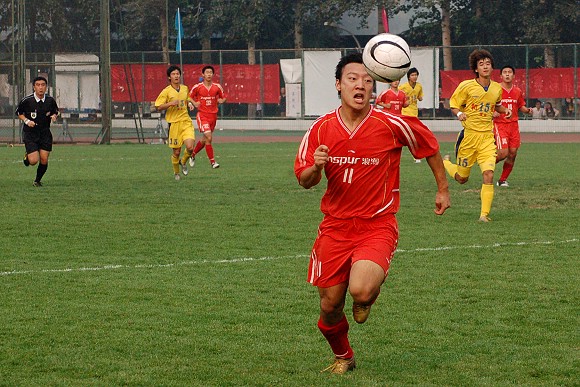 天津火车头队的队员身高优势化解了北京理工大学足球队的一次次反攻。