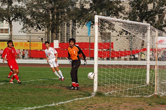 9月23日下午,“云网杯”2006年中国足球协会乙级联赛(北京理工大学赛区)最后三轮的比赛拉开了帷幕,我校足球队此次坐镇主场迎战天津东丽足球队。在联赛上半程的比赛中,我校足球队受对方主场恶劣场地的影响,在客场曾以0:0与对方打成平局(点击此处可进入相关链接)。此次主场作战,又适逢2006级新生入校,全队上下士气高昂,决心给全校师生员工一个惊喜。校长匡镜明,党委副书记、副校长杨宾,党委副书记、工会主席侯光明等学校领导也来现场观战。