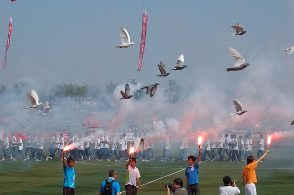 我校足球队第一个步入开幕式会场