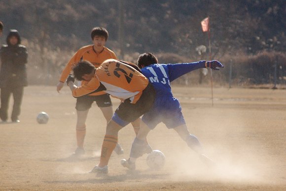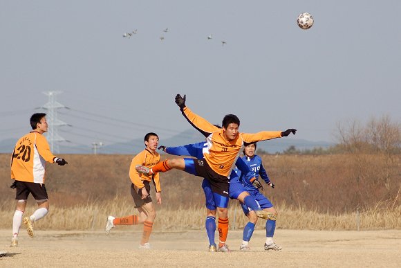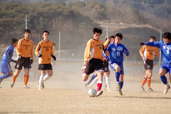 北京理工大学足球队与韩国大学生足球队进行友谊比赛。