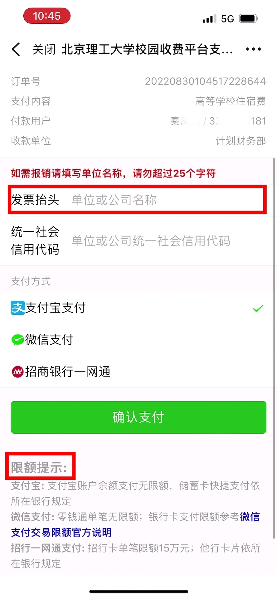 2.确认支付前请按银行转账限额提示,适当调整支付限额。