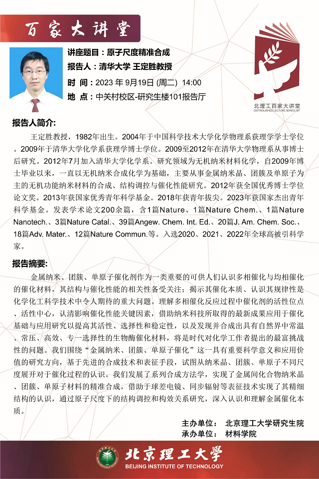 > 【百家大讲堂】清华大学王定胜老师报告预告