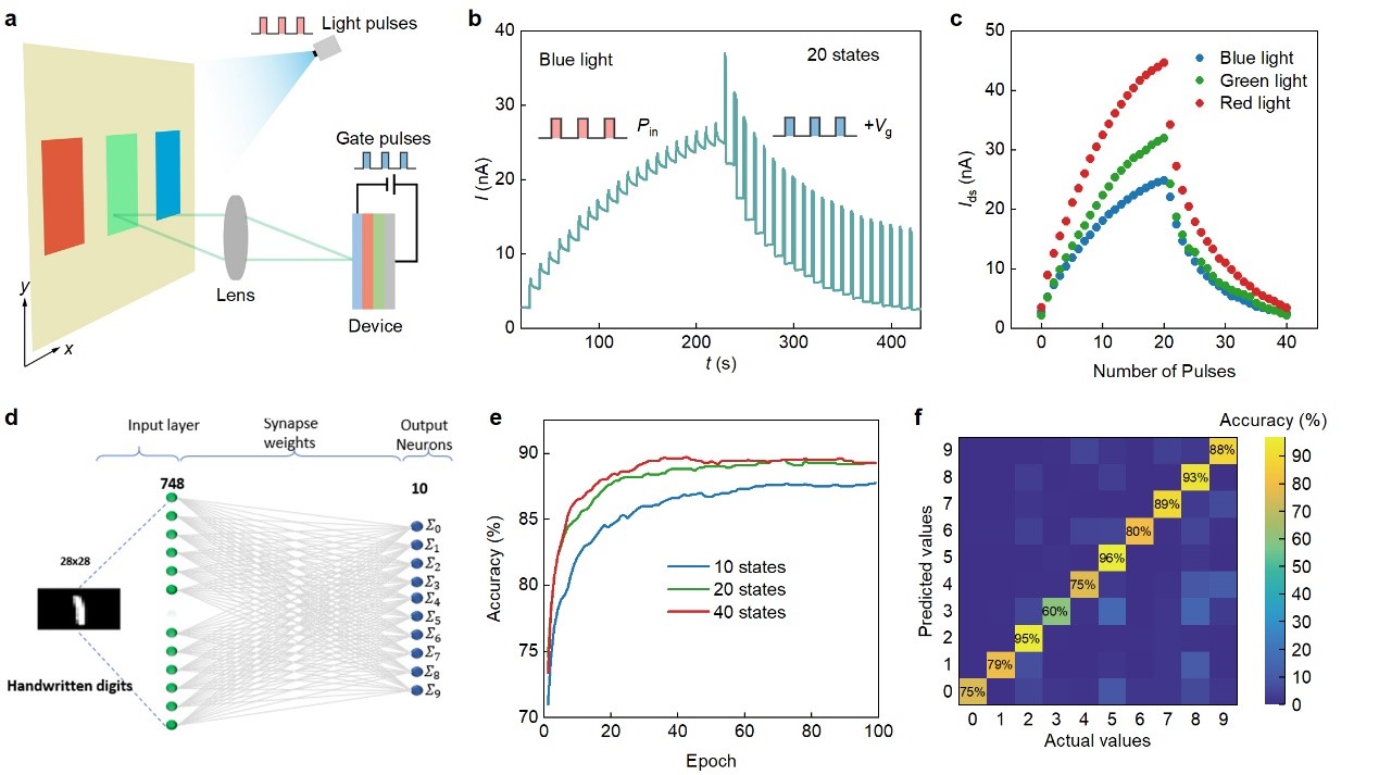 图4. 范德华光谱仪神经形态计算功能展示
