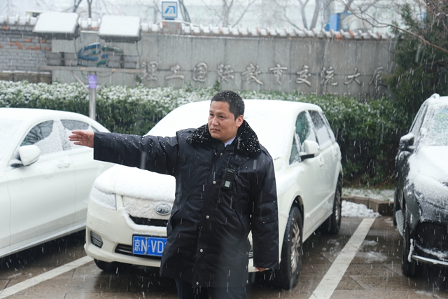 风霜雪雨,阻不断值守教室踏实的脚步;晨星夜幕,隔不断关注师生温暖的目光,心中有爱,立足岗位,把师生扎根在心里。