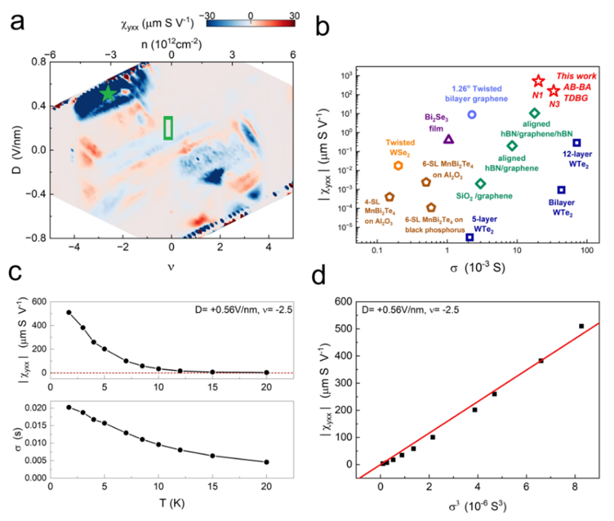 图1. 转角双层-双层石墨烯中有报导以来最大的二阶非线性霍尔输运信号