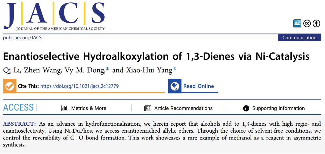 北理工课题组在Ni催化1,3-二烯不对称氢烷氧化反应方面取得重要进展