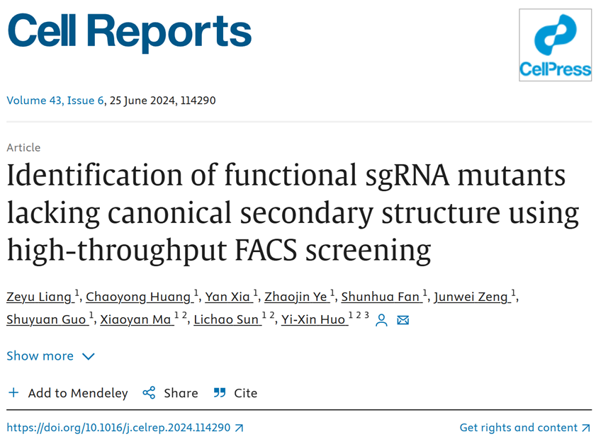 近日,北京理工大学霍毅欣教授团队在CRISPR/Cas9系统功能性sg... -