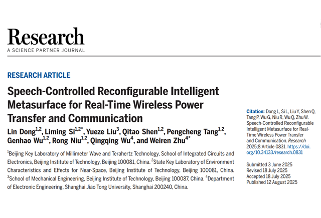 近日,北京理工大学集成电路与电子学院司黎明教授课题组在语音控制可重构智... -