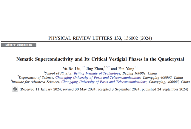 北京理工大学物理学院杨帆教授团队与合作者考虑准晶中由于相互作用而诱导的...