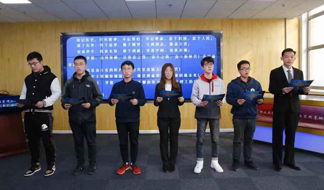 2019年,不仅是建国70周年,也是“五四”运动100周年。让青春梦与中国梦同频共振,广大青年既是追梦者,也是圆梦人,勇作时代前列的奋进者、开拓者、奉献者,担负起历史的重任。在“北理工拓天之路”画卷前,创新团队学生代表们进行了青春宣誓。“我宣誓,铭记历史,传承精神,勇于追梦,敢于创新,担当作为……”铿锵有力的誓言,充分展现了北理工学子敢于奋斗、敢于逐梦、立志报国的精神面貌。