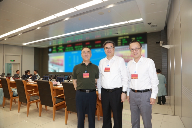 北京理工大学校长张军院士、副校长龙腾在北京飞控指挥中心观看卫星发射